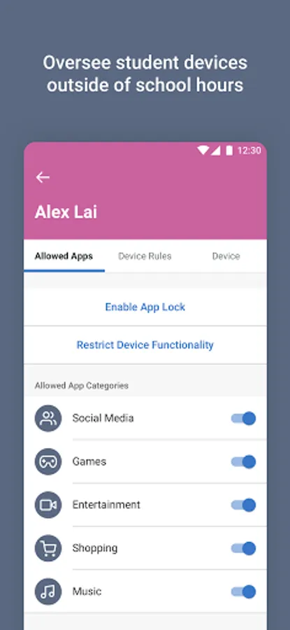 - Create scheduled app restrictions for homework time, bedtime, and timeout
