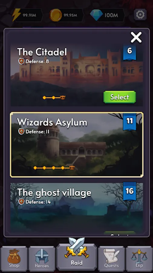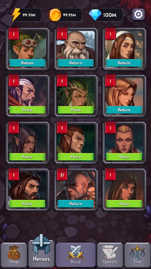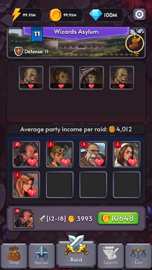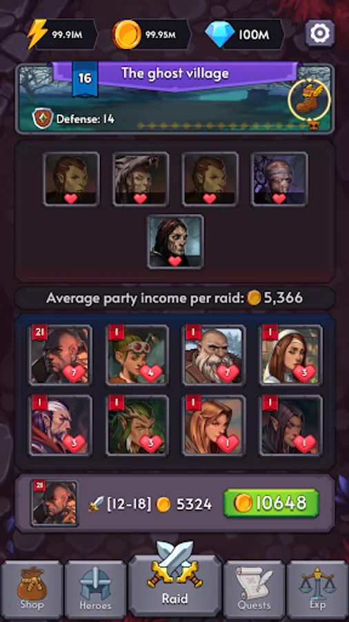 Build your powerful rpg dream team to protect villages and destroy enemies. You will meet diverse heroes on our raid journey. Being the leader you must decide who to invite. Each heroes features should be used wisely. Combinations of heroes, skills improvements, new characters - keep an eye on your team to deal with terrifying rpg monsters.
