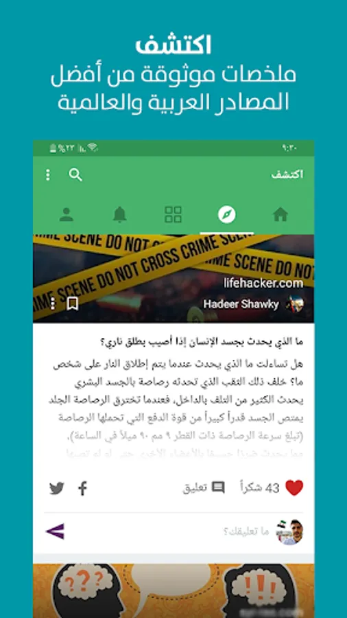 يتيح تطبيق جمهرة قراءة منشورات مختصرة ورائعة حول مختلف المواضيع التي تهمكم، هناك 20 تصنيفاً رئيساً في جمهرة ومئات المواضيع الفرعية، وآلاف المنشورات عالية الجودة التي تزداد كل يوم، إنها أفضل وجبة من المعرفة التي يقدمها لكم مساهمونا ومحررونا بشكل يومي!