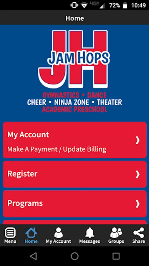 The Jam Hops app allows you to register for classes, parties and special events. The events calendar, social media links, and contact information are also easily accessible from the app.