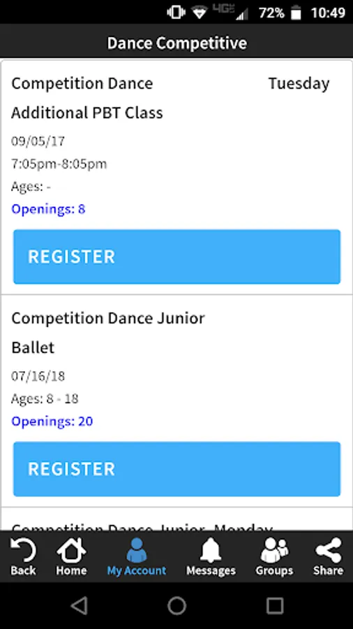 - Have a class in mind? Search by program, level, day, and time. You can register or even put yourself on a wait list.