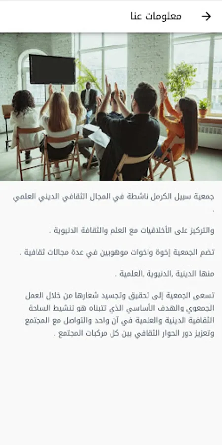 The association seeks to achieve and embody its motto through collective action, and the main goal it adopts is to activate the cultural, religious and scientific arena at the same time, communicate with society and enhance the role of cultural dialogue between all components of society.