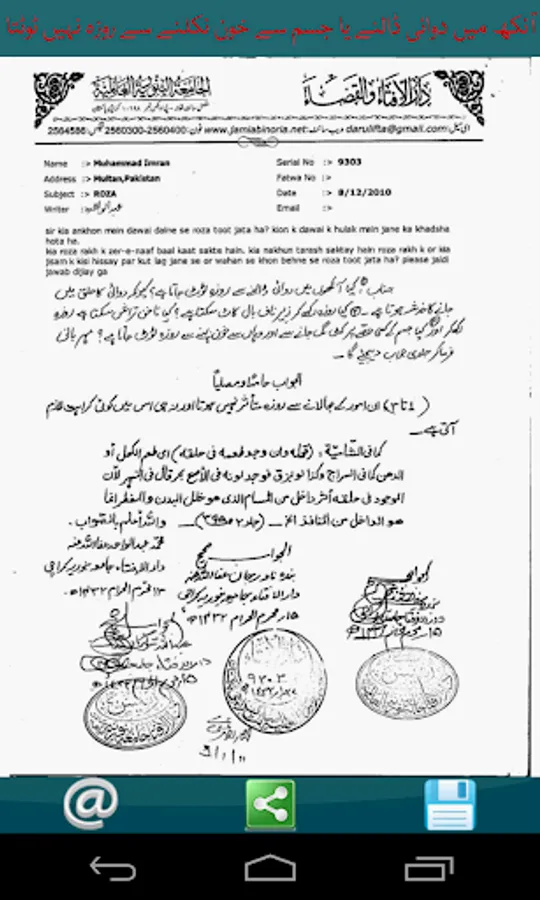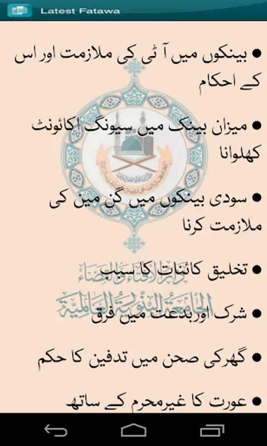 The App offers scanned fatwa with stamp & signature (in urdu language) for a variety of subjects and issues relating to our everyday life.