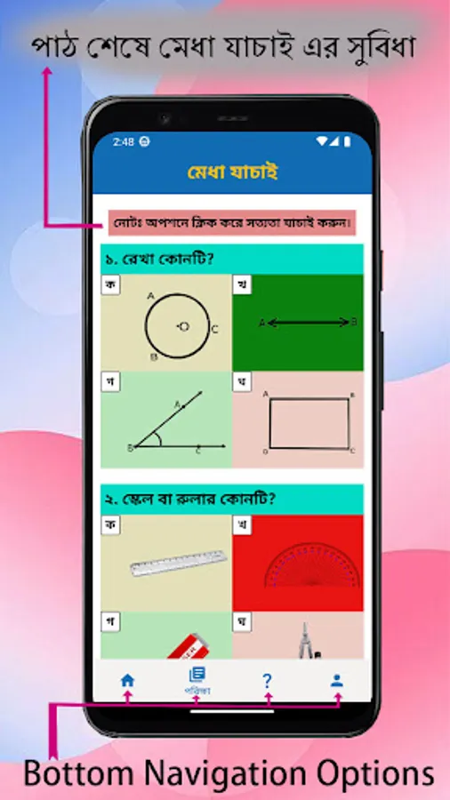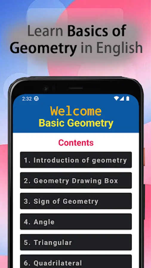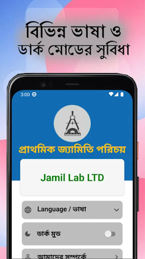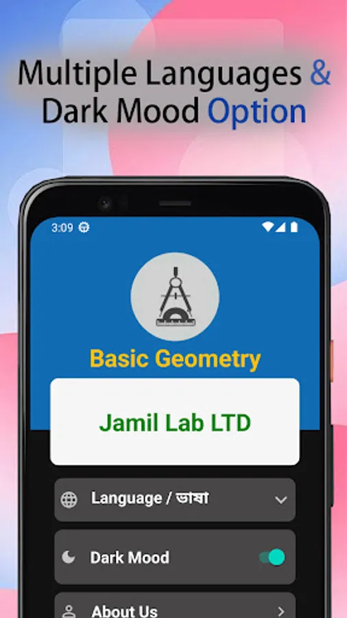 জ্যামিতির বেসিক থেকে সবকিছু ভালকরে জানার জন্যই মূলত এই এপ্সটি তৈরি করা হয়েছে। যারা জ্যামিতির কিছুই জানেন না, শূন্যথেকে শুরু করতে চাইছেন। ভাল করে জ্যামিতির ধারণা অর্জন করতে চাচ্ছেন একদম বেসিক থেকে মূলত তাদের জন্যই এই এপ্সটি। এপ্সটিতে ধারাবাহিকভাবে কিছু পাঠ রাখা হয়েছে যেগুলো শেষ করার পর একটি পরিক্ষা দেওয়ার সুযোগ থাকবে। যেখানে আপনি আপনার নিজের স্কিলকে চেক করতে পারবেন। আপনি জ্যামিতির বেসিক সম্পর্কে কতটুকু জানেন সেটি দেখে নিতে পারবেন। এছাড়াও এপ্সটিতে থাকবে মাল্টিপল ল্যাঙ্গুয়েজ অপশন। আপনার পছন্দমত ভাষায় আপনি এপ্সটি ব্যবাহর করতে পারবেন। এছাড়াও ডার্ক মোড সিস্টেম রয়েছে।