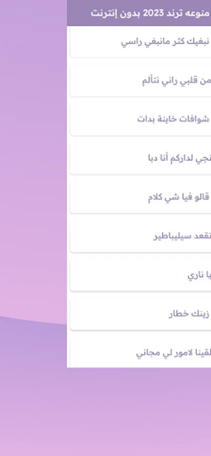 The "Variety of Trending Songs 2023 Without Net" application is an ideal musical companion for Moroccan folk music lovers, as it provides them with a distinct and varied listening experience without the need for an Internet connection, and they can enjoy it anytime and anywhere.