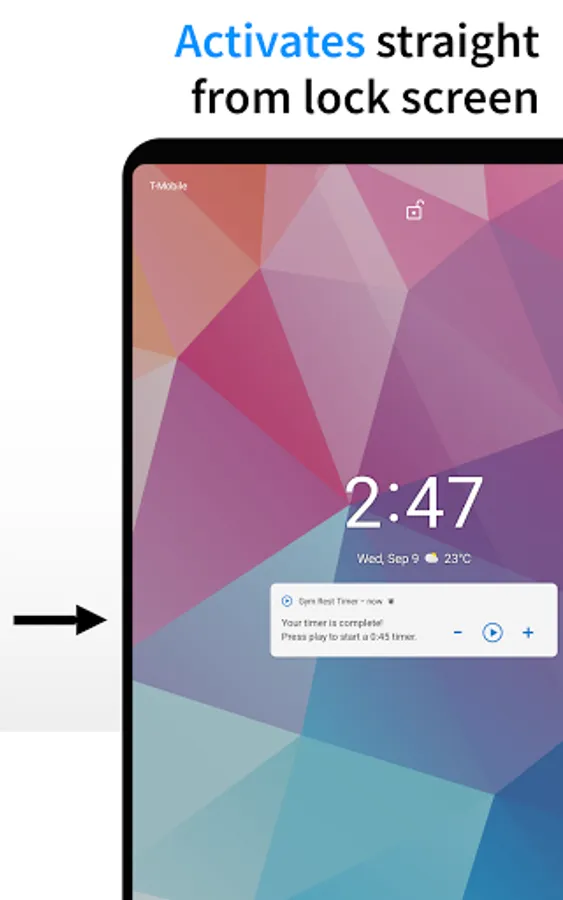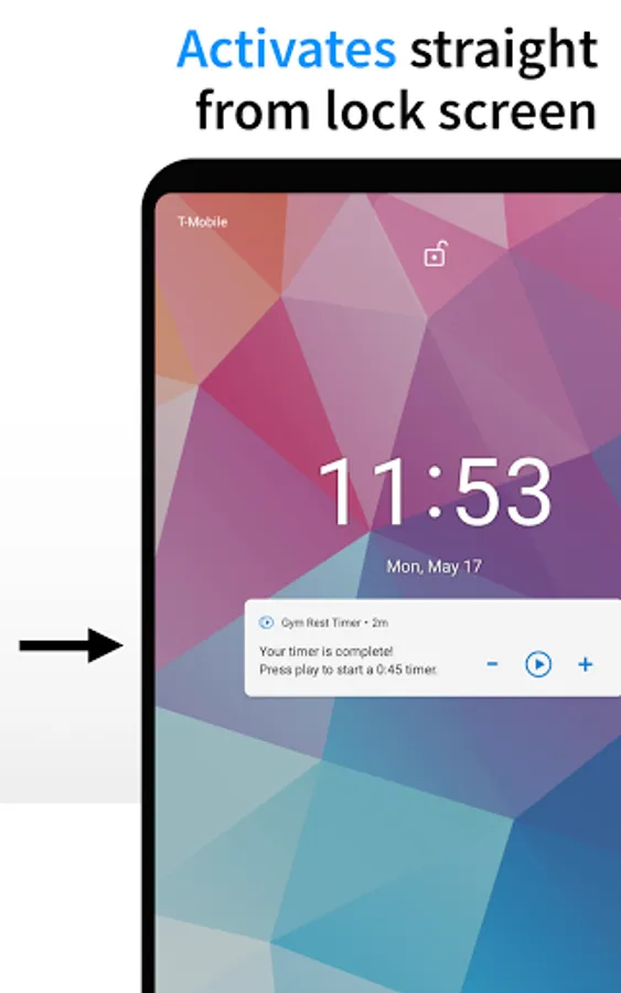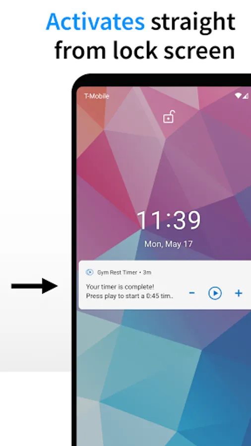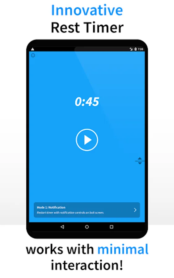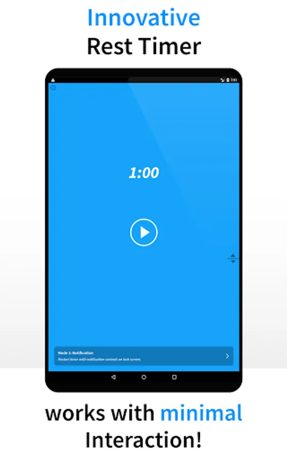 1. Notification mode - when your rest timer completes it sends you a special 'media style' notification which allows you to control and restart the timer direct from your lock screen.