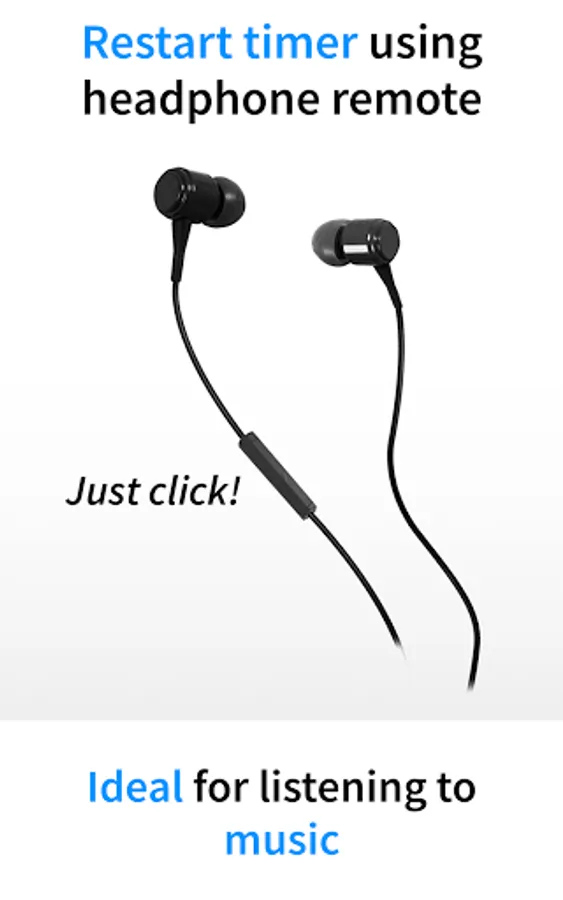 2. Headphone remote mode - whilst listening to music you can just press the 'play' button on your headphone remote and it will start your rest timer for you without interrupting your music. You'll hear a 'ding' to let you know when your rest time is over.