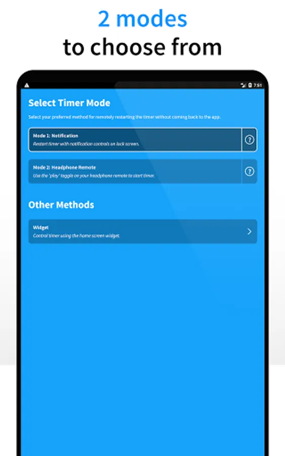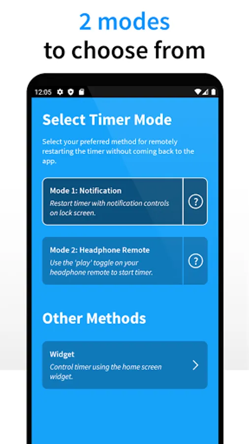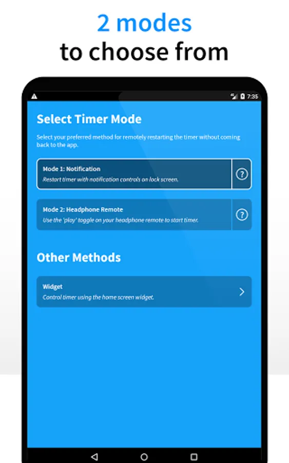 An accompanying widget can be added to your home screen to make starting and controlling your timer even easier.