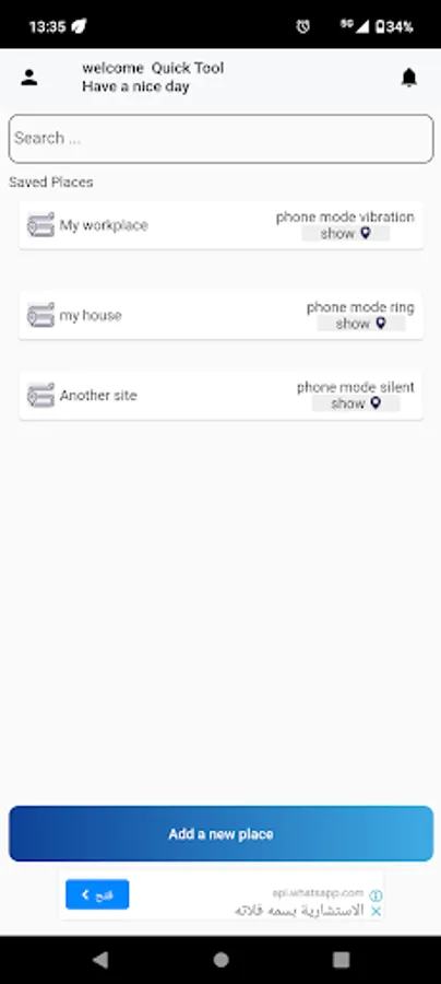 Quick Tool يقوم بتحويل هاتفك عبر موقعك المحدد بكل سهولة تلقائياََ.