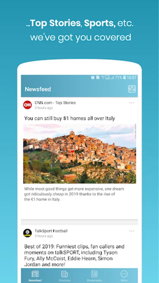 Instead of browsing through a whole website or newspaper, or downloading multiple news apps to cover all updates from different countries or regions, you can now easily manage the news that you receive, by selecting the categories and topics which appeal to you the most, or event better, pick the sources of news that interest you and thus personalize your newsfeed accordingly. You will be able to surf through your newsfeed and check the latest trending stories, without having to read the whole article, and if you want to read further you can always visit the source page.