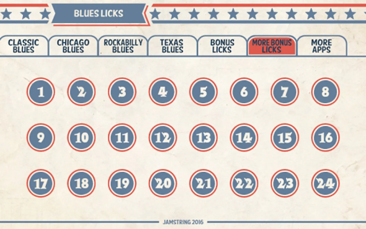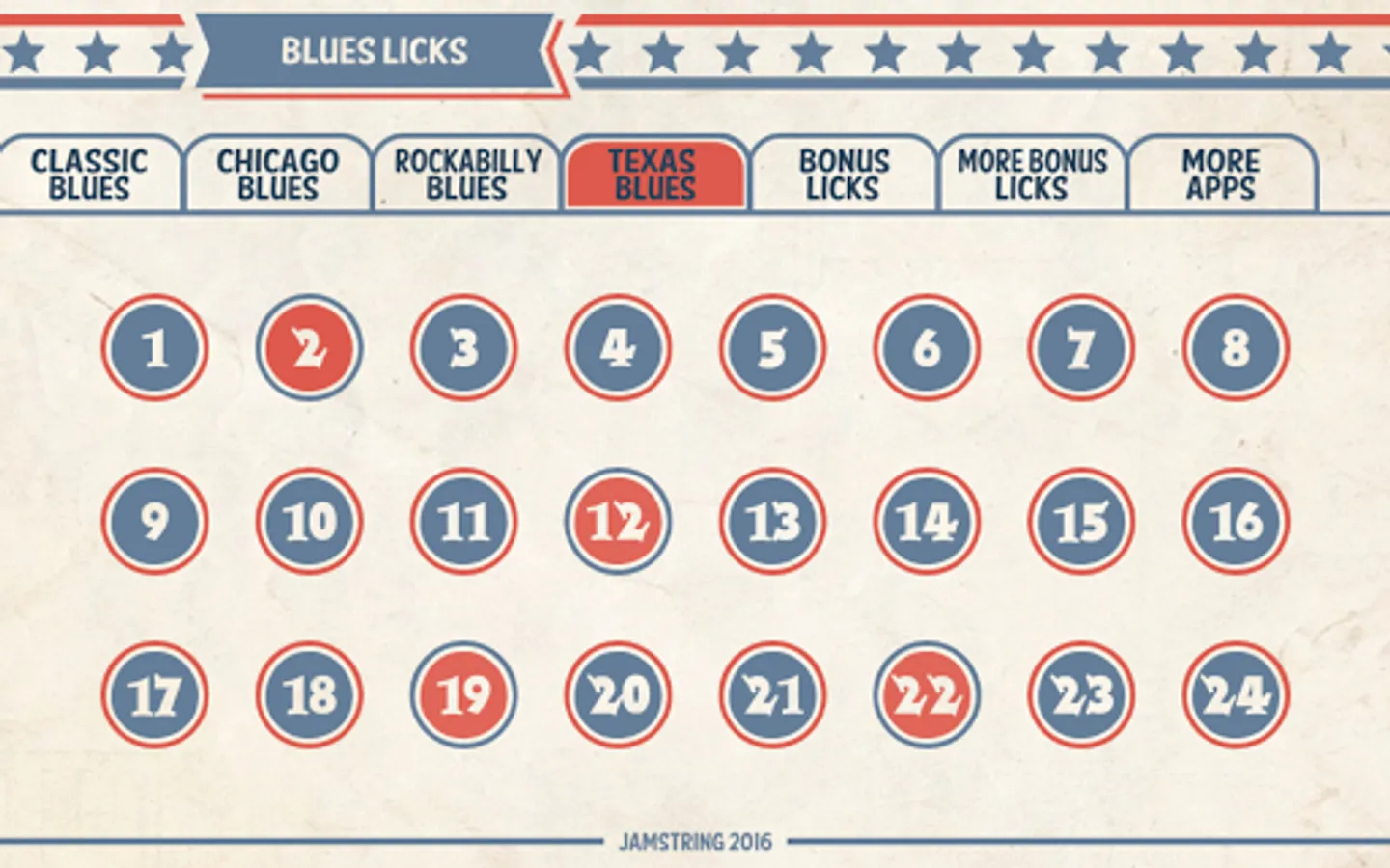 ● Texas licks. Blazing, aggressive licks straight from Texas! These are some of the fastest, most technical licks in the app.