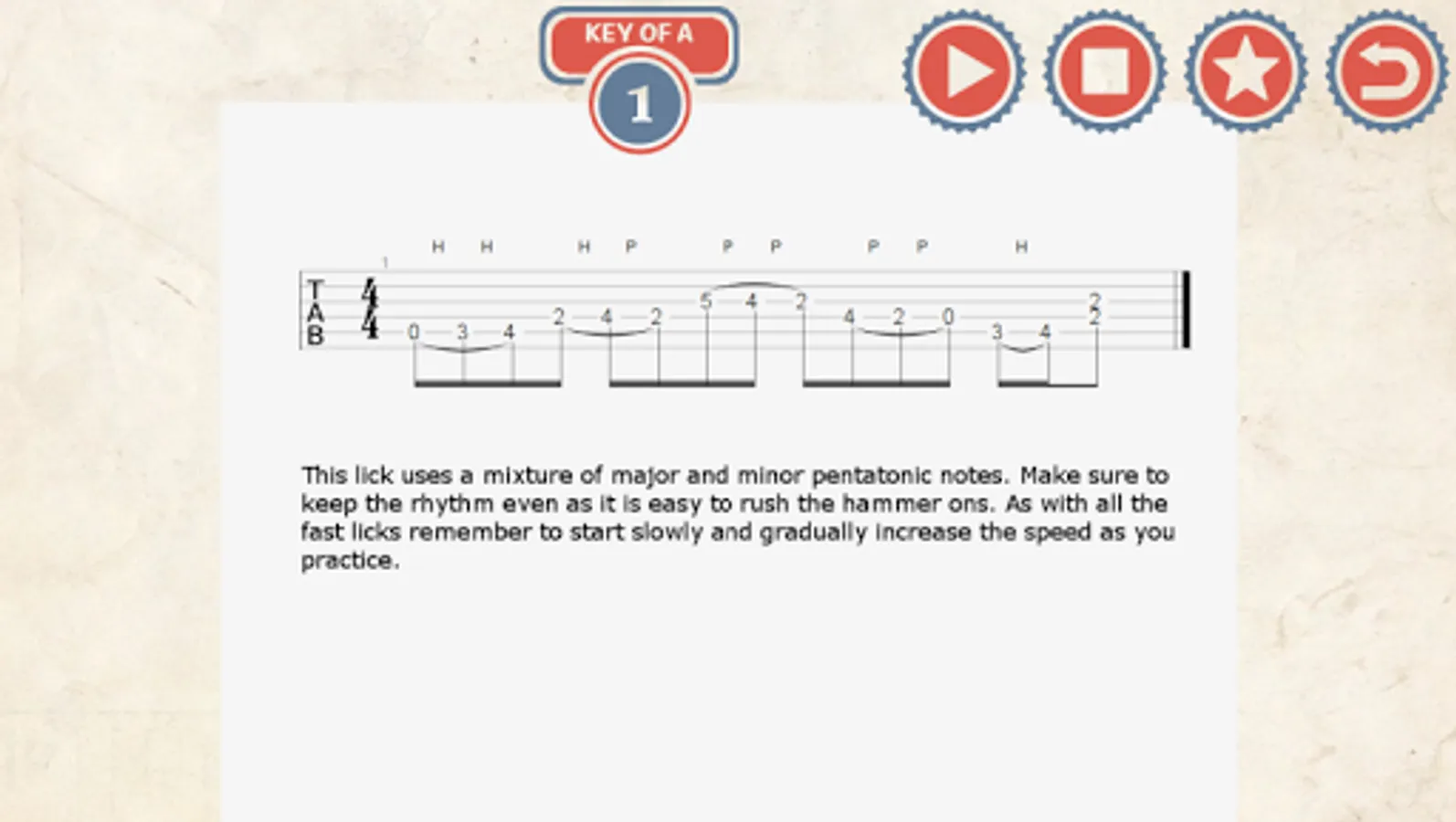 ● Licks are at a range of difficulties; advanced licks for experienced players and easy licks for beginners