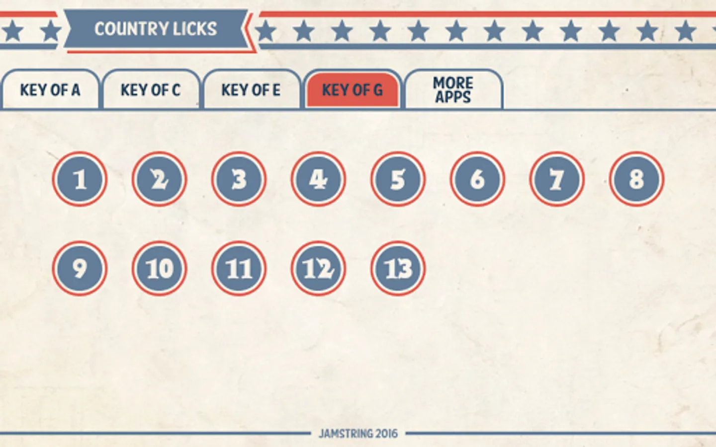 ● The licks are organised into the 4 most common country guitar keys C, G, A and E.