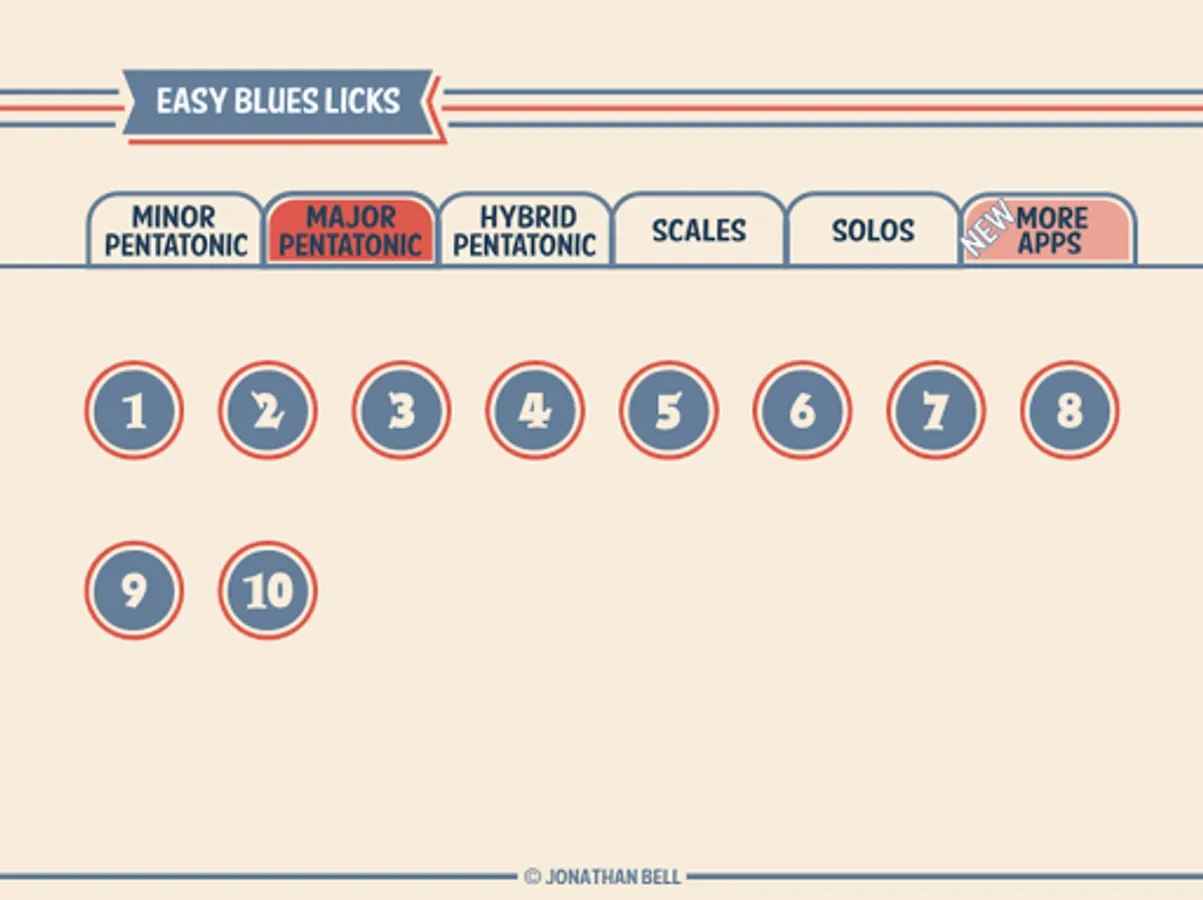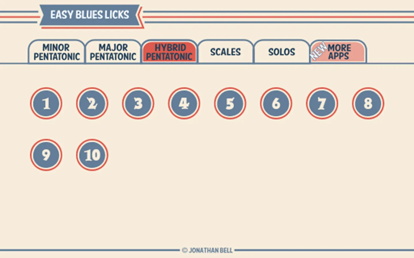 ● The licks come from 3 different scales shapes (minor pentatonic, major pentatonic and a combination of the two).