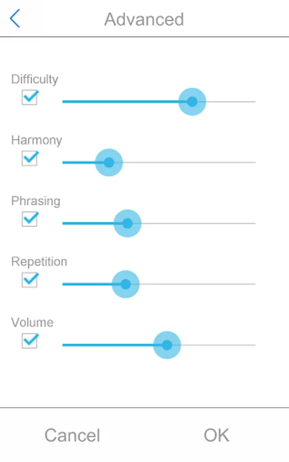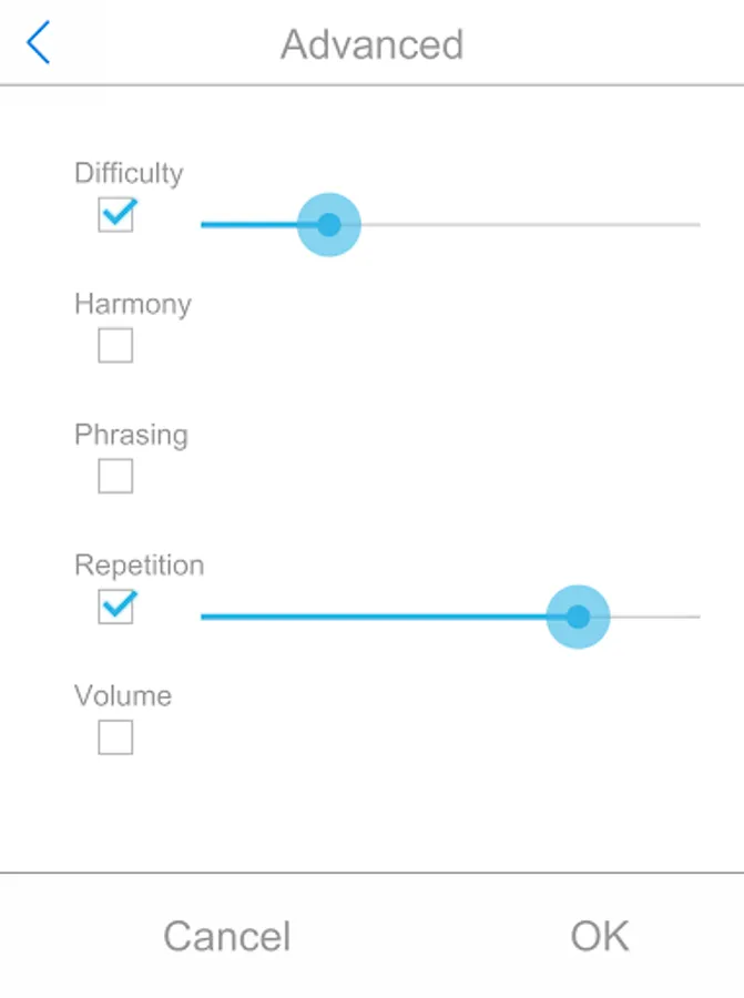 •Choose the chord progression for your solo (or have one automatically created) and shape your solo by adjusting phrasing, harmony, repetition and difficulty sliders.