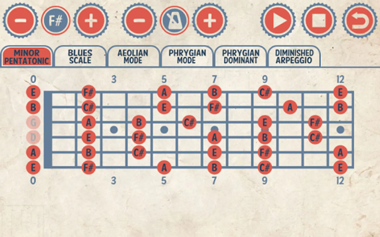 ● Scale diagrams for the pentatonic, blues, aeolian, phrygian and phrygian dominant scales needed to jam along with each track.