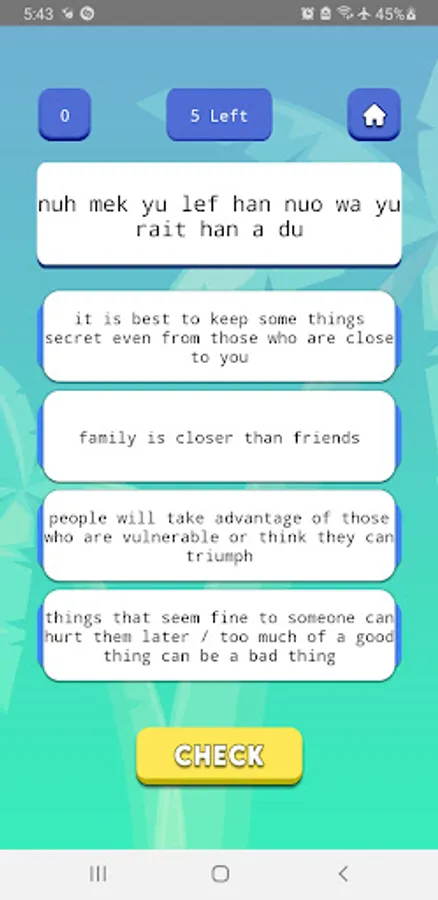 JamVenture is a fun and challenging word game inspired by Jamaica's rich culture and language. The app is designed to help users learn and improve their Jamaican Creole language skills by giving them words to spell using a set of random letters.