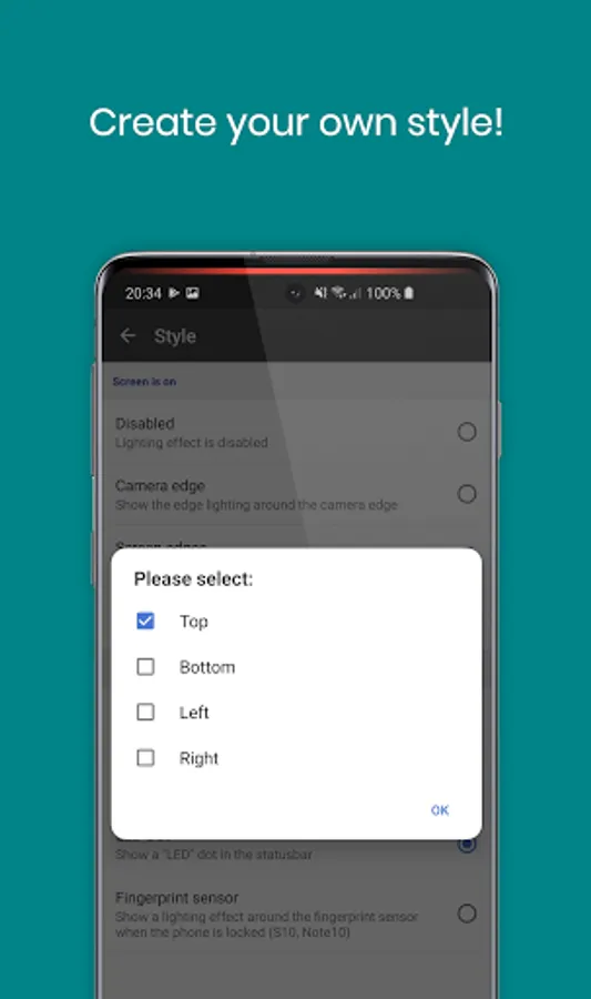 You can select different notification light styles and show the notification light around the camera cutout, screen edges or even simulate an notification LED dot in the statusbar of your phone!