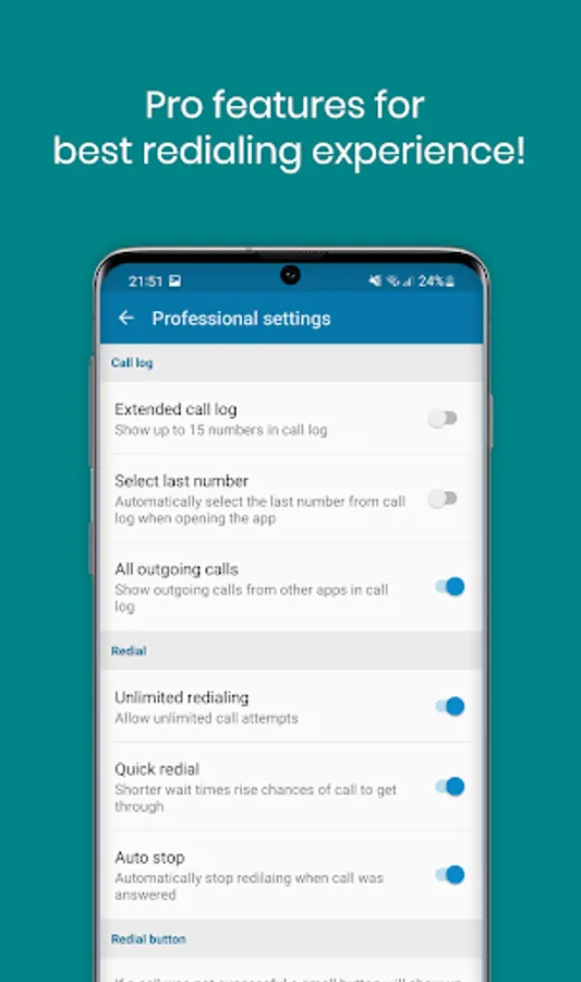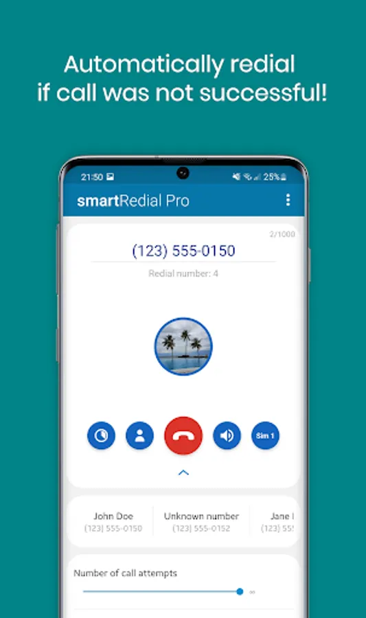 If you do not get through, because the line is busy, smartRedial will automatically redial the number for you. Lean back and let the app redial until you succeed!