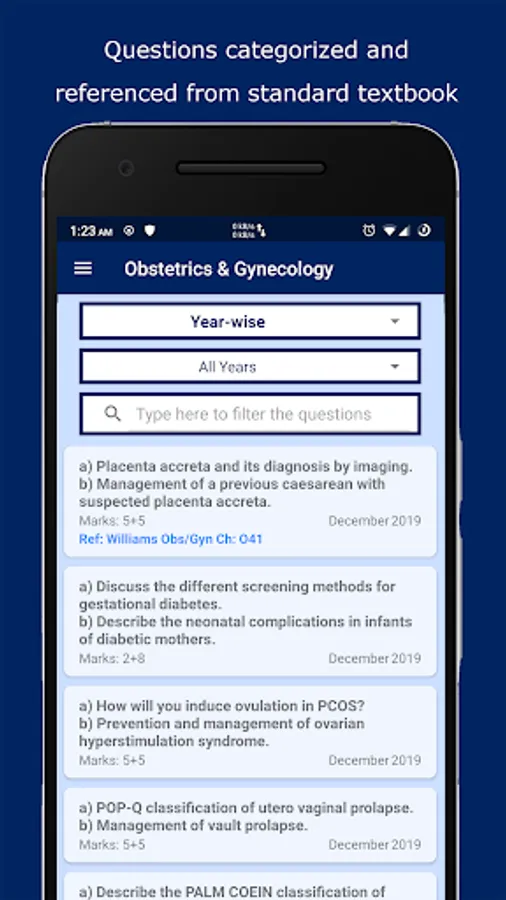 This application includes previous years questions of Obstetrics & Gynecology broad specialty.
