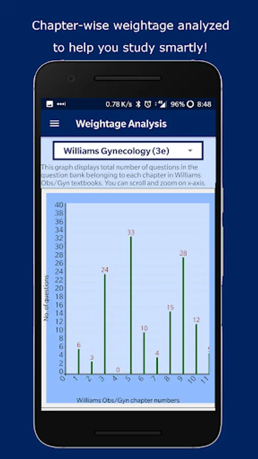 - Included is analysis of weight-age of various chapters based on number of questions asked from them. This is depicted in the form of a scale-able graph.