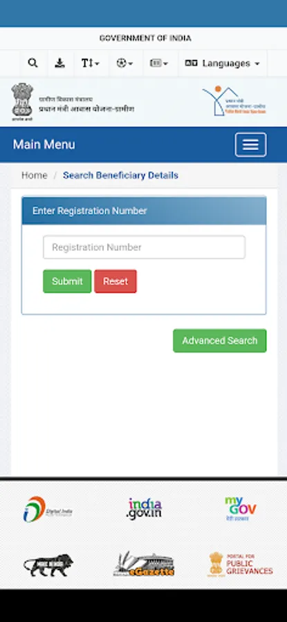1. Search Beneficiary Details (लाभार्थी की जानकारी खोजें - ग्रामीण)