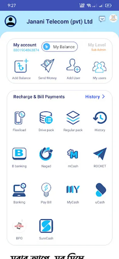 Quick Recharge Solution for Grameenphone, Airtel, Robi, Teletalk, Banglalink user can get also, pay bill , etc