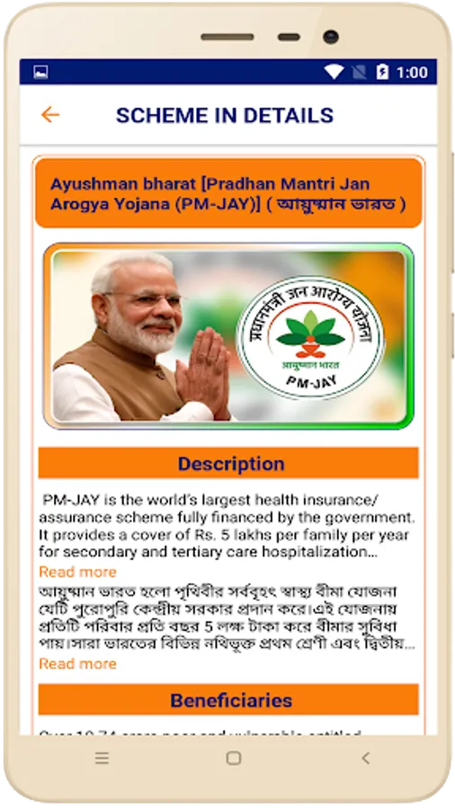 There are a number of public welfare schemes offered for the benefit of common people of India. The information are available in various India Government websites. This app collects the information from the respective Government websites and arranged in a way so that it will be easier for common people to keep themselves well informed about these schemes. This app arranged the schemes, give descriptions of them in a nutshell and also give resources / contacts for the respective authority so that common people can easily opt for the schemes when in need.