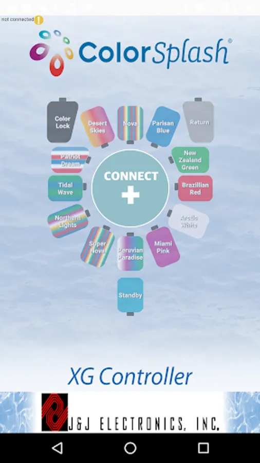 Bluetooth enabled LED lighting controller for synchronization and control of J&J Electronics ColorSplash LED color changing Pool & Spa and Fountain lighting and other LED color changing pool lighting.