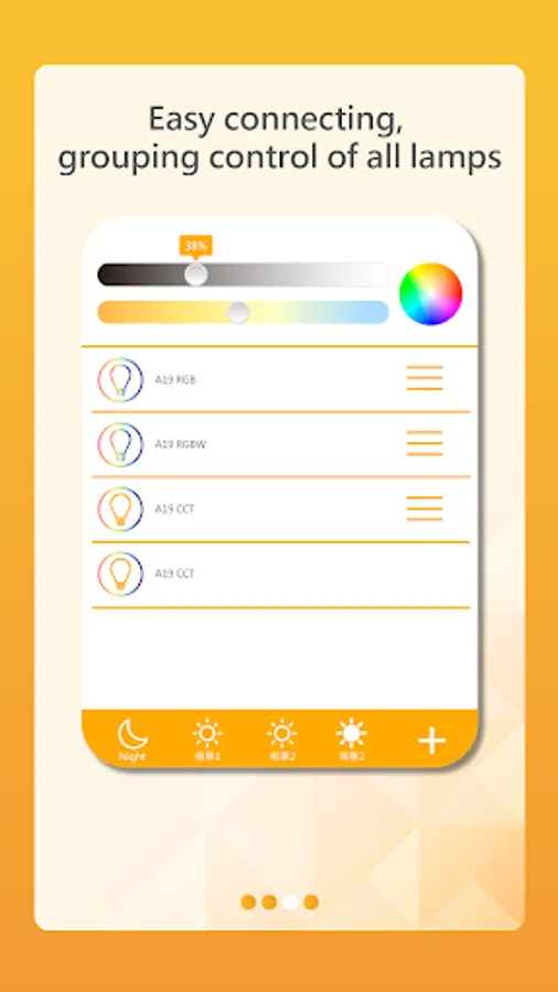 Changing color by smart phone or pad with easy installation, through changing the lighting atmosphere by your finger! Whether common white light of home, colorful lighting for party, atmosphere for watching movie, or reading atmosphere of warm white lighting, all the atmosphere can be create through APP of Sollos color changing lamp series, creating fantastic visual enjoyment.