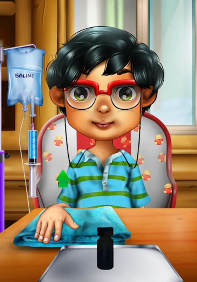 But administering shots is not easy! You need to have all the right equipment before you can get started, and don't rush the job! Be careful, your patients are frightened. You have to be calm to show them that there's nothing to worry about! A steady hand is needed. Guide the needle into the patient gently and give them their shot, then apply soothing ointment to make it all better. Then you get your just reward - a big, happy smile from a very grateful and all fixed up patient!