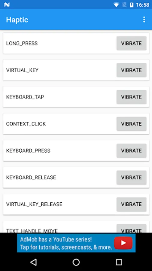 I don't understand how vibrate my device when I'm developing Android app using HapticFeedbackConstants.
