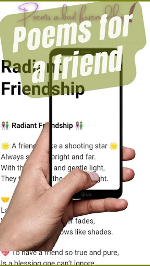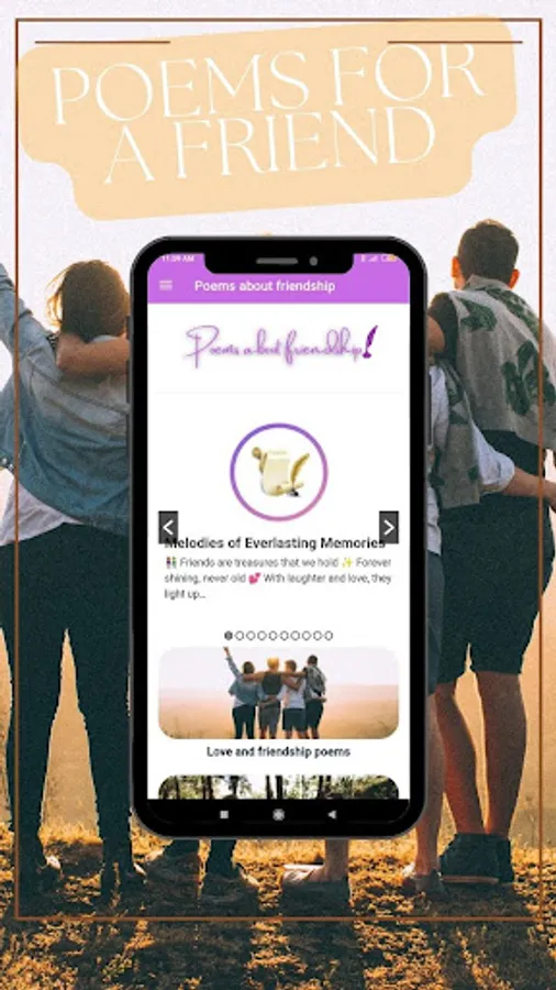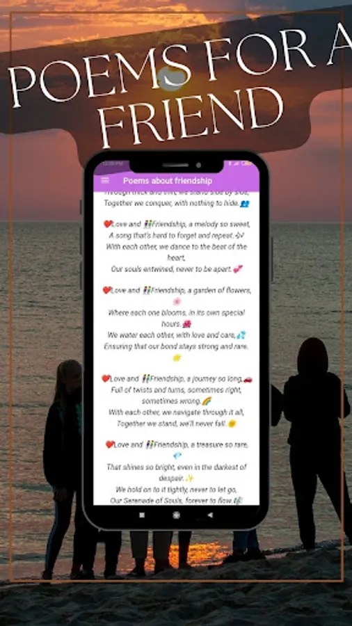 Check out our Friendship Poems app now and immerse yourself in a unique literary experience that celebrates life's most precious bonds. Explore a wide selection of heartwarming and authentic verses designed to touch the hearts of those looking for best friend poetry and friendship poems in English.