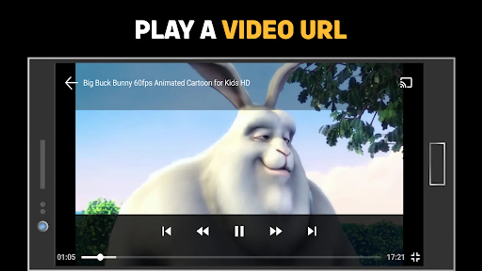 Play an external video file from any remote video URL using the in-built video player or any other video player installed on your device.