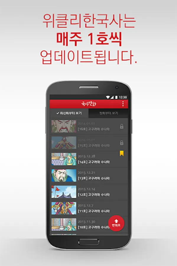 이미지, 리스트 로더 업그레이드! 이제 국사만화 리스트와 이미지뷰어에서 속도 업그레이드가 이루어지면서 엄청 빨라졌습니다. 보통 만화앱에서는 볼수없는 속도감을 체험하세요!