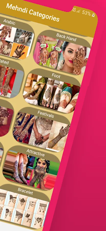 Mehndi Design 2023 is used by famous mehndi/makeup artists as their favorite mehndi design app. Download this app and make your hands more beautiful than ever. Mehndi Design 2023 has latest mehndi designs for all cultures. This app includes Pakistani Mehndi Designs, Indian Mehndi Designs, Arabic Mehndi Designs, Indian-Arabic Mehndi Designs, African Mehndi Designs, Moroccan Mehndi Designs, Western Mehndi Designs, Indian- Western Mehndi Designs are divided into the following categories.