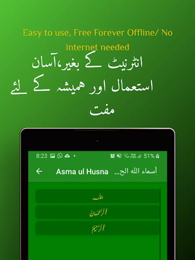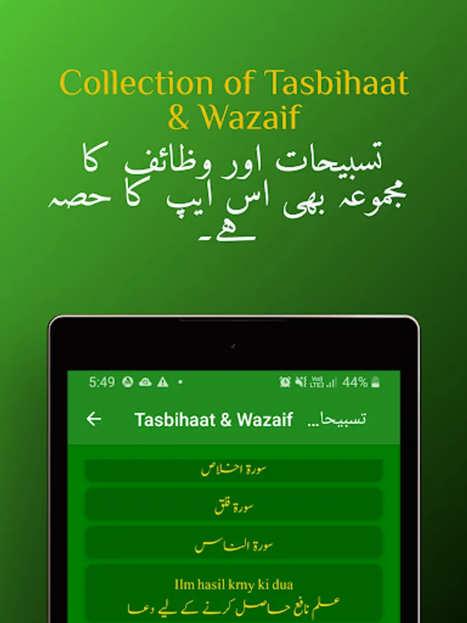 لا إله إلا أنت سبحانك إني كنت من الظالمين and many other tasbihat are a part of this app