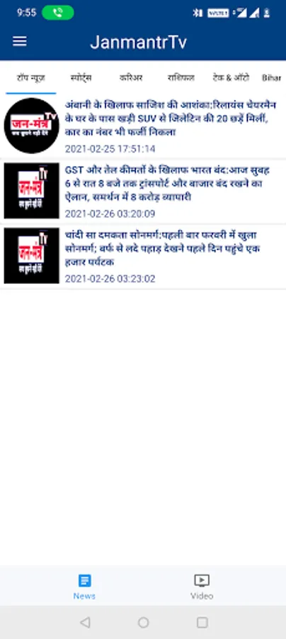 Live streaming of news videos of breaking news (ताज़ा समाचार) and trending news (ट्रेंडिंग न्यूज़).