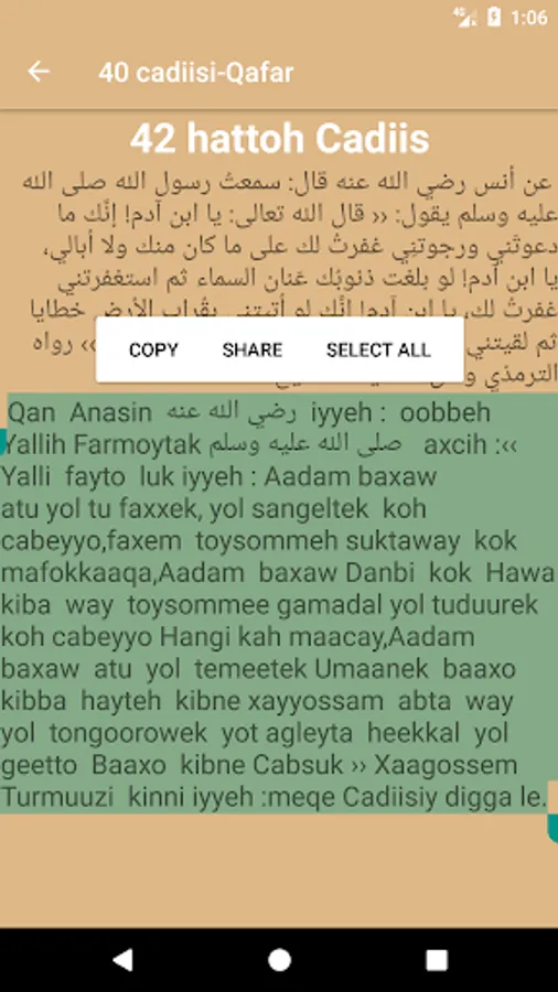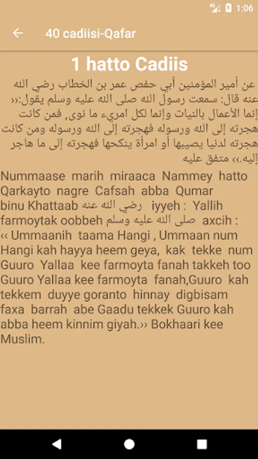 Arbaqiin cadiisi Qafar afa- farmoyti maxco inn’aafat sin xayosneh