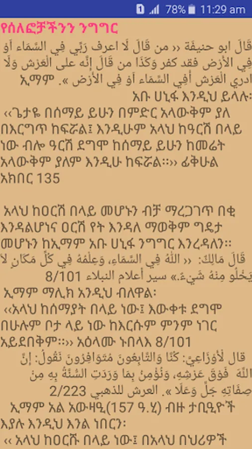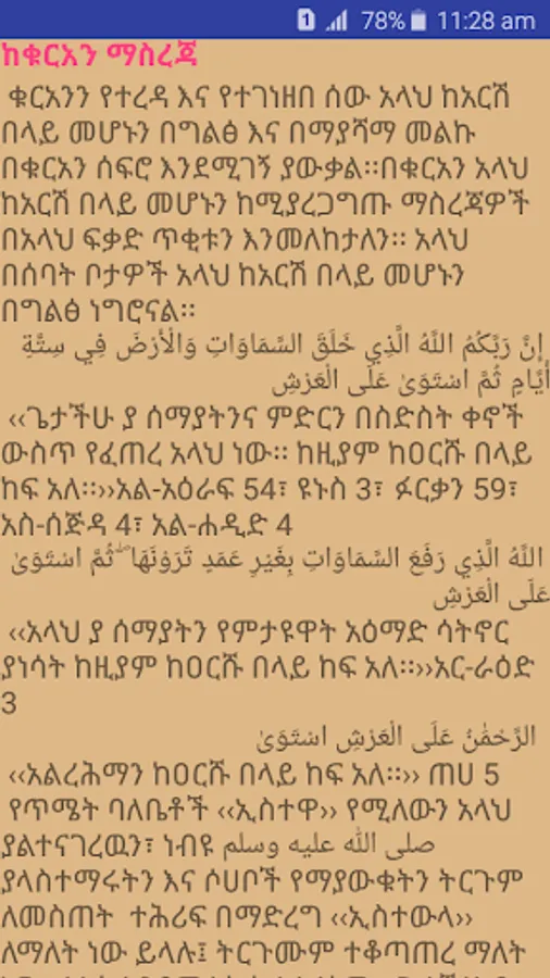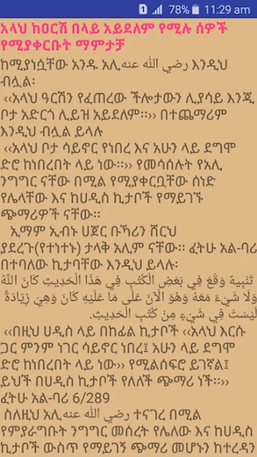 አላህ የት ነው የተሰኘው አፕሊኬሽን አላህ ከዐርሽ በላይ መሆኑን የሚያረጋግጡ የቁርአን አንቀፆች፣ሶሂህ ሀዲሶች እና የሰለፎች ንግግር አካቶ ይዟል፡፡በተጨማሪም የተለያዩ ፊርቃዎች የሚያነሱት ማደናገርያ ለመዳሰስ ተመኩሯል፡፡
