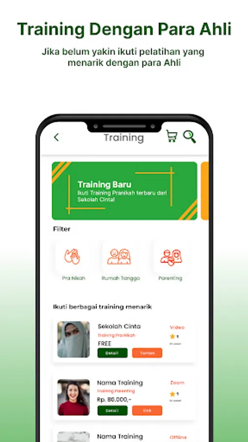 Training: Participate in online and offline training with experts on pre-marital, household and parenting.