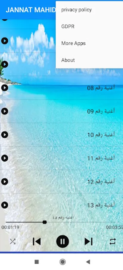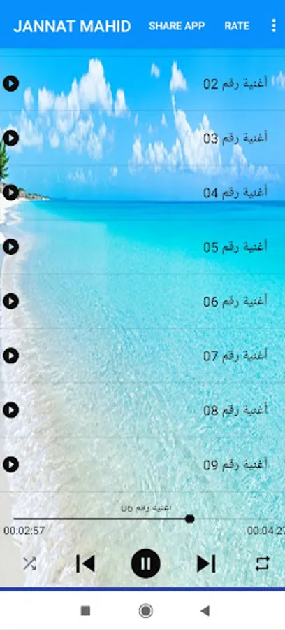 - You can switch automatically between the songs of the artist, Jannat Muhaid, to the next songs, randomly or in order.