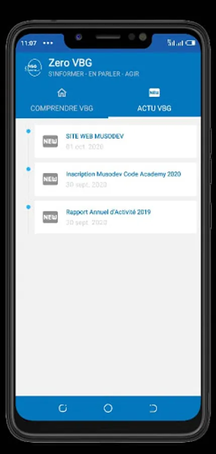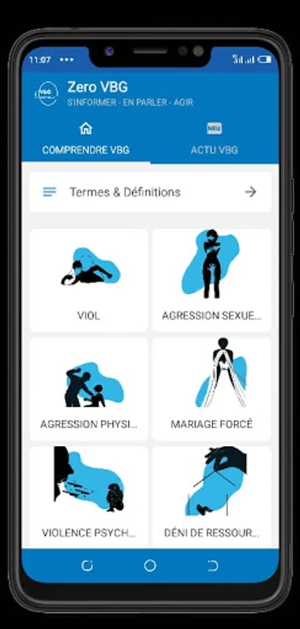 As part of the implementation of Objective 1, we have developed the prototype of the "Zero GBV" application, a web platform and a mobile application for information and awareness on gender-based violence.