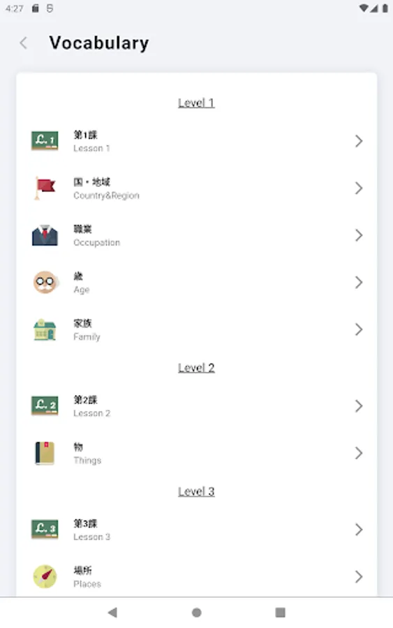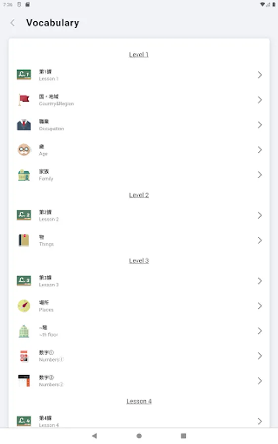 - there are vocabulary lists. You can check all vocabulary at a glance and make it easy to memorize words.
