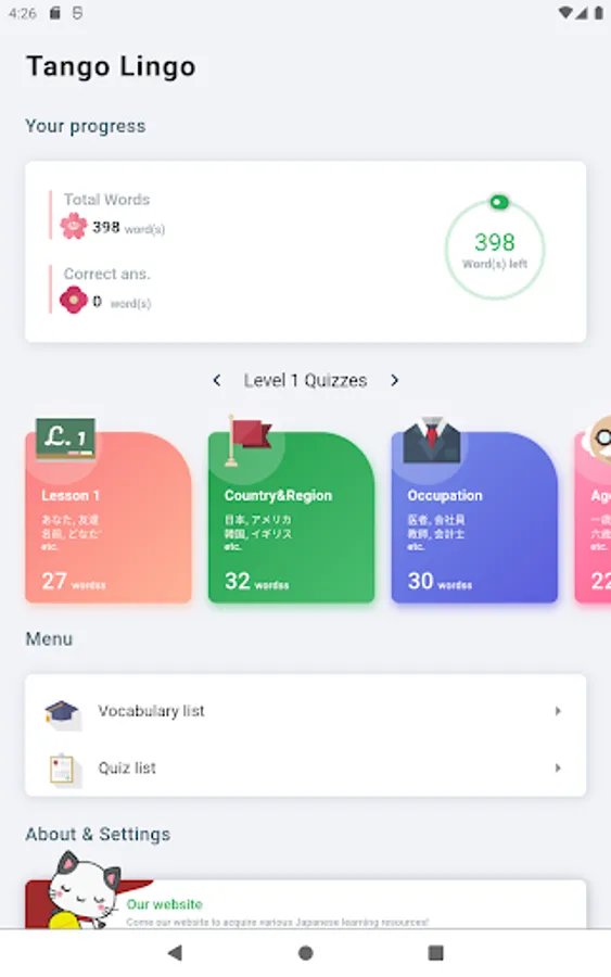 With Tango Lingo, you can learn Japanese vocabulary faster and efficiently anytime and anywhere!