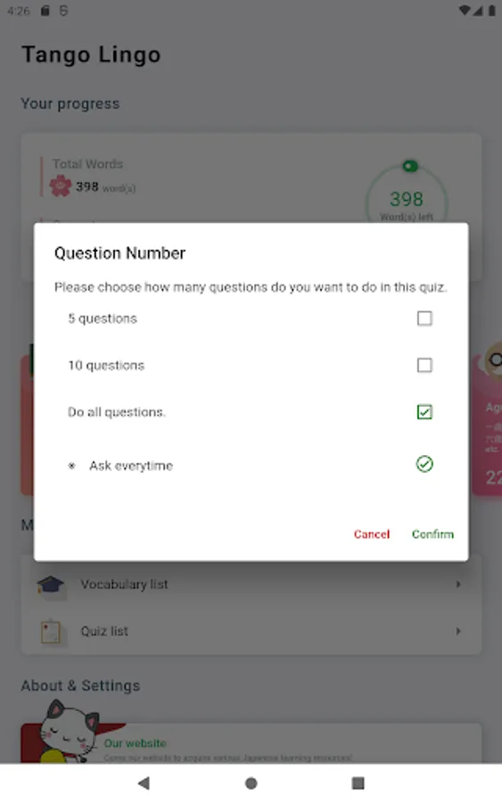 - we have the function to chase your progress, so that you will know how many words you have learned so far