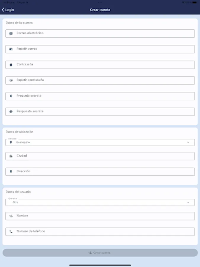 ● Create account.