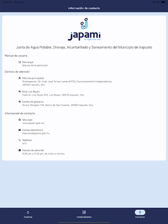Through the JAPAMI App you can check the amount of the receipt for the water, drainage and treatment service.
