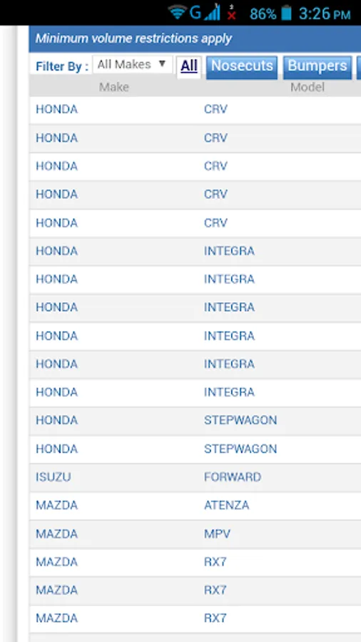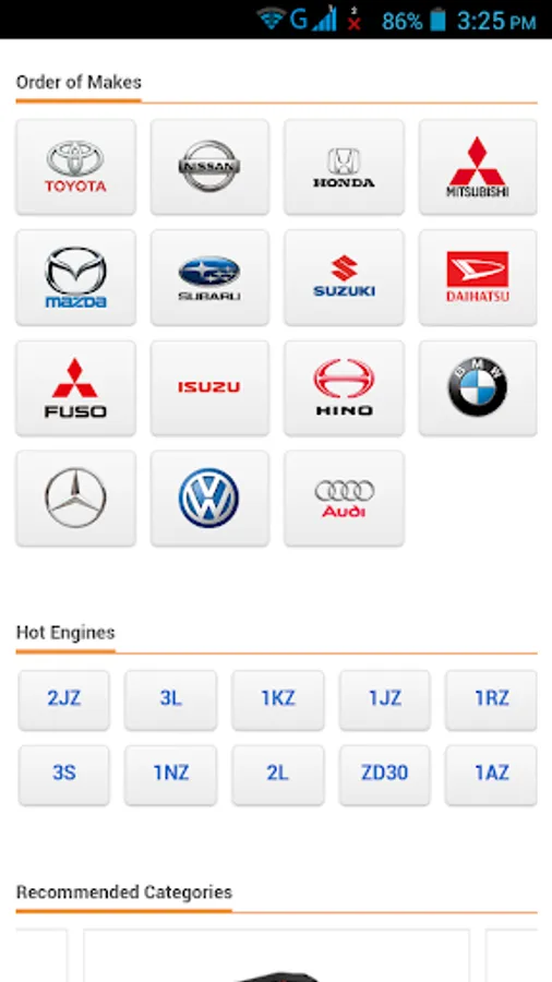 Through this FREE Android APP auto lovers can find all types of auto parts and spare parts for their vehicles. Search any type of accessory from popular auto part stores of Japan. It covers headlights, coolant, battery charger, fuel treatment, tools, wipers, brake pads & shoes, brake rotor, radiators, water pumps, starters, alternators, wheel bearings, ignition coils, spark plugs, batteries, oil filters, motor oil, belts & hoses, wiper blades, air filters etc. Search and find used auto parts store near me with this APP. You can easily find discount auto parts online in Japan.