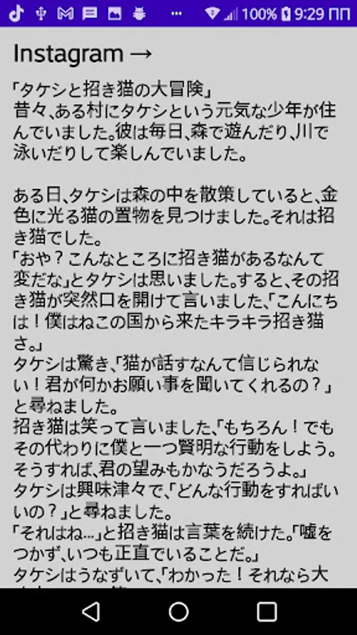 「おや?こんなところに招き猫があるなんて変だな」とタケシは思いました。すると、その招き猫が突然口を開けて言いました、「こんにちは!僕はねこの国から来たキラキラ招き猫さ。」